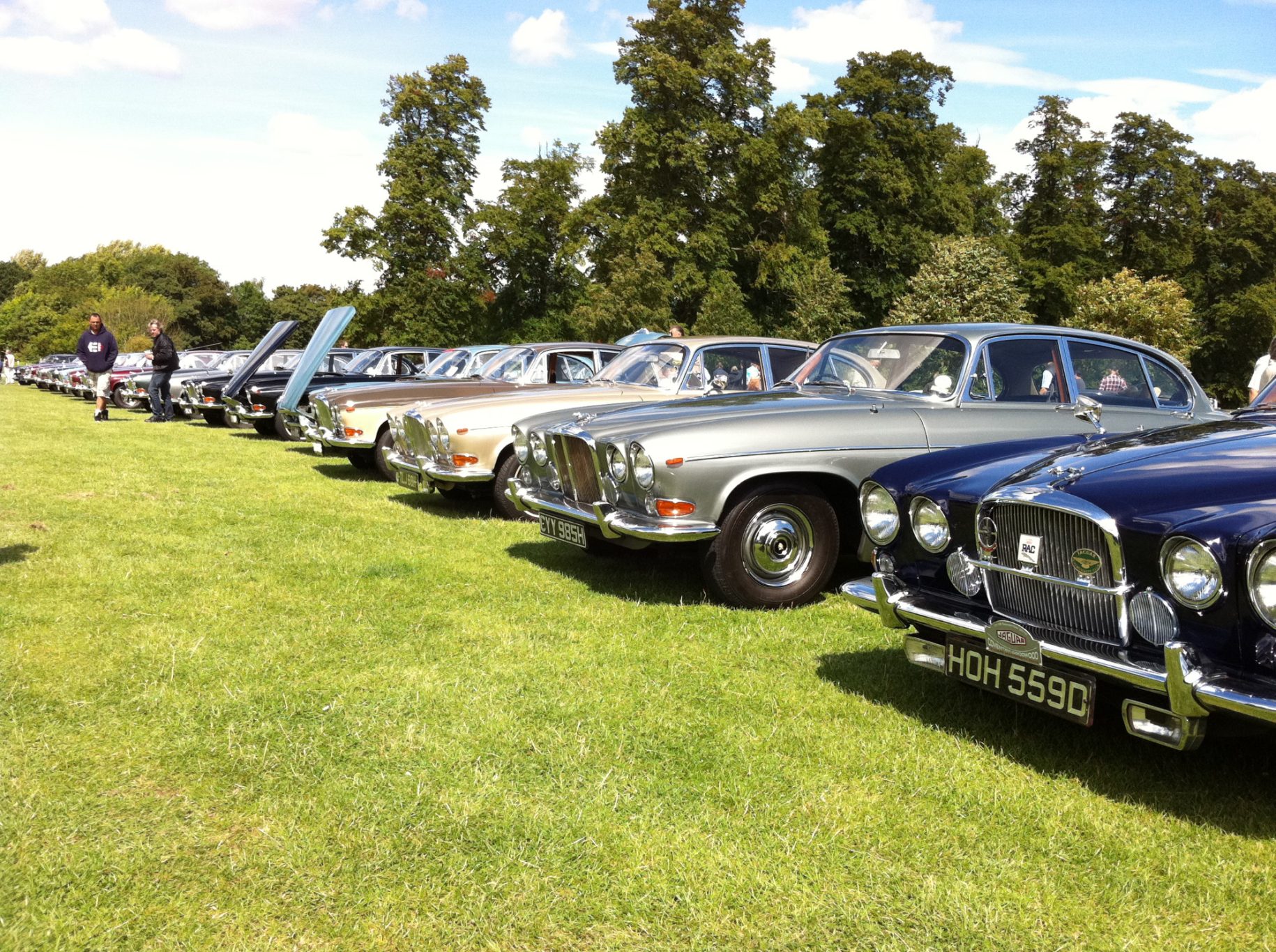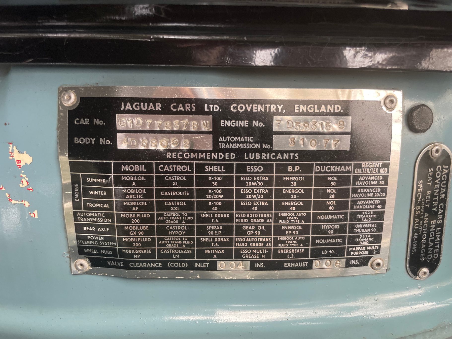 In 2011 and 2012 myself travelled twice to Great Britain to explore the roots of my Jaguar. Weeks ahead I made an appointement with the Jaguar Heritage Trust and it was an honour to see the original book of records with the handwritten notices of my personal example G1D77837BW including all its specifications. So I really could underline: Matching numbers of motor, gearbox and ratio of rear axle. Same year I joined a proud event in Great Britain celebrating 50-ties Birthday of Jaguar Mk10 . There were up to 45 Jaguars Mk10 3.8/4.2 and 420G present. Very impressing and I guess never before/again so many Big Cats at one time / one place. By the way my Big Gee was the only one in ´solid light blue´ and without the leaping cat on the bonnet. The journeys were a pleasure to drive with its hugh comfort beside its sporty charactere.