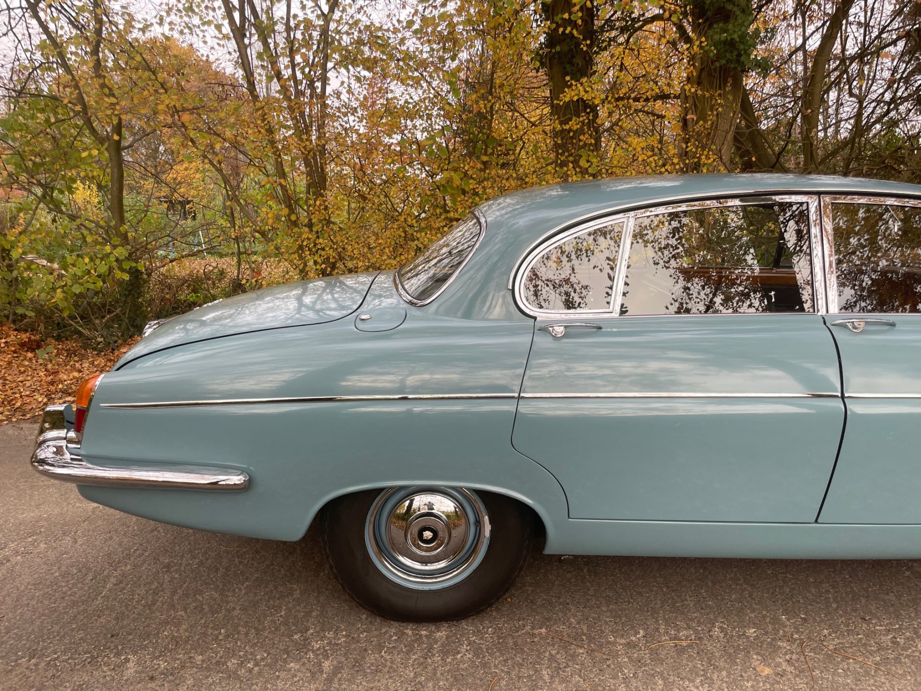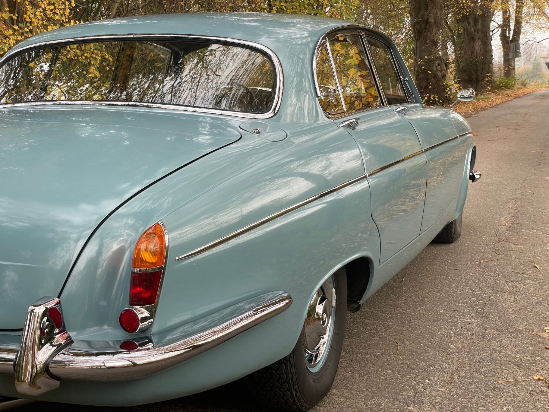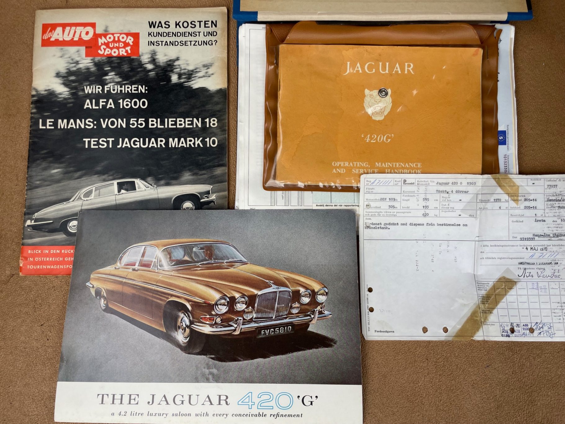 First registration in Stockholm/Sweden by Mr Forsberg, a medical doctor. After four years he overtook the Jaguar to his summerhouse at countryside Sweden and he drove it there just from may till september without any snow/ice/salty roads. The garage was kept alltime warm for the 420G. In 1997 he died and his wife passed the car to a close friend of them. Unfortunately Mr Lindberg got ill (loss of brain) and his family was forced to sell the Jaguar to a third owner. Mr Sederowsky is a friendly-crazy guy in Koeping who runs an own beer-brewery. After some years he advertized in 2008 this great kept Jaguar and on my trip to Sweden I fell immediatly in love with its unique authentic condition. In 2013 I made a big trip of 3500kms to Sweden to visit all previos owners. It was an honour to join the first owners wife, Mrs Forsberg, and we had a great time at her summerhouse where the Jaguar was kept approx 25years. Passing a lot of rich nature and historic castles I met Mr Lindberg and Mr Sederowsky, too. This was a great history-tour in its homeland Sweden! I am since 2008 the proud owner and I am loving all aspects of this great Jaguar...