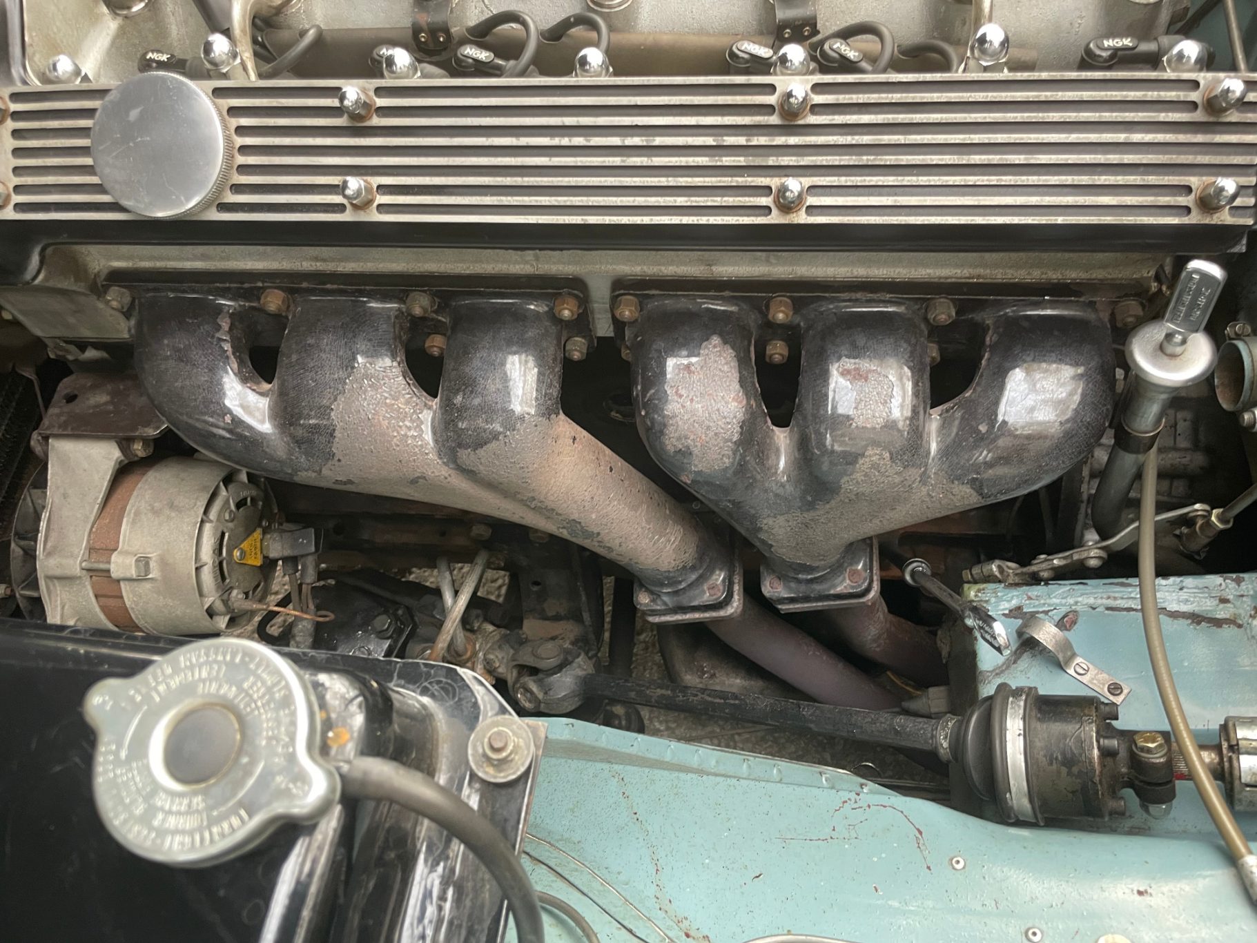 This Big Cat is free of serious rust and was never restored. In 17years of my ownership the Jaguar was mantained professionally with many new parts. I spent big efforts to keep the orignal look even we restored a lot of technical parts. The brake servo and master-brake-cylinder are inside fully new ... but outside kept in its wear of age. Thats my way to keep the car most authentic as it is possible. Everything is working as it should (except of vacuum-operated heatingregulation) and the Jag is ready for any longdistance trip all over Europe.