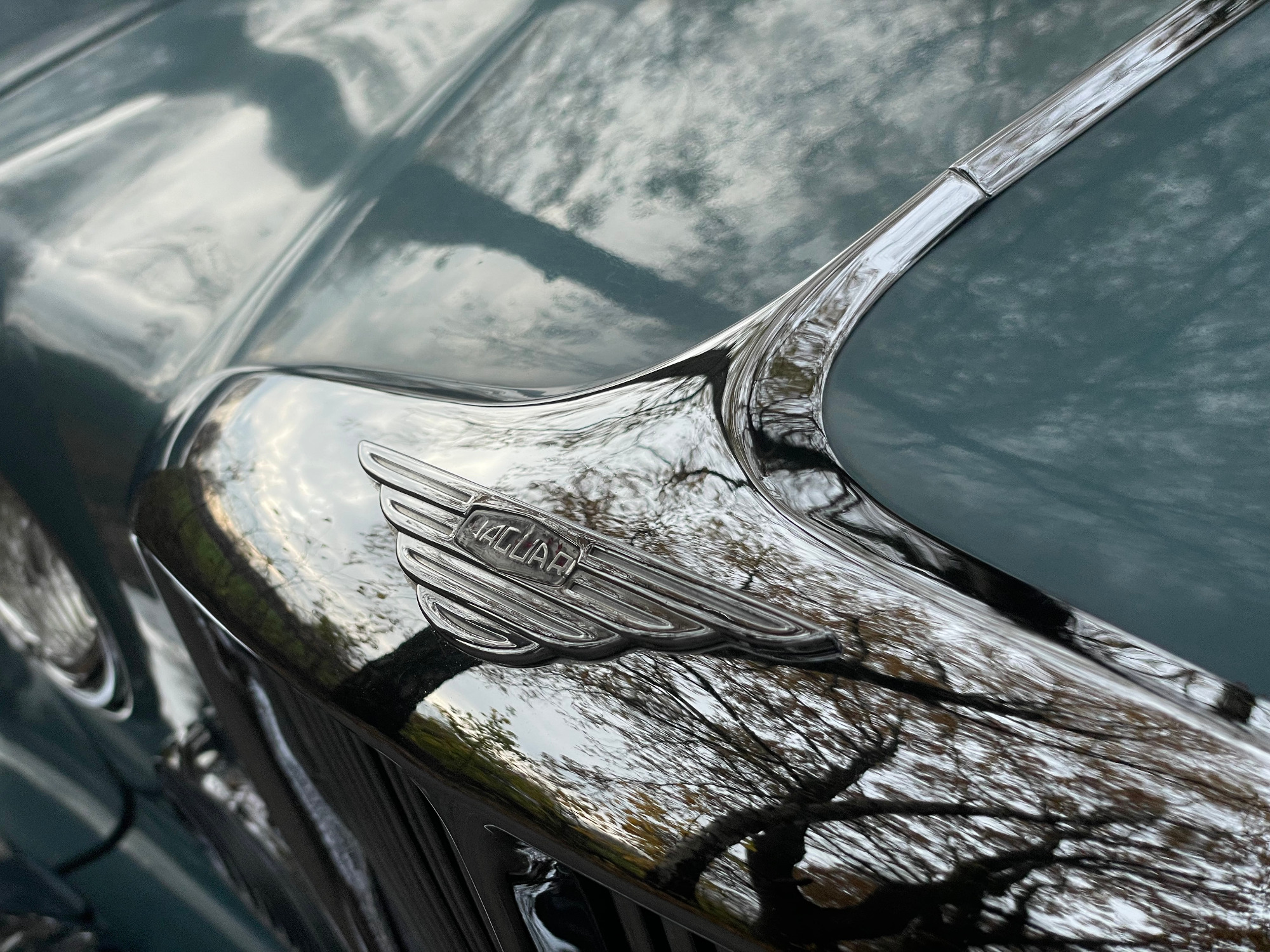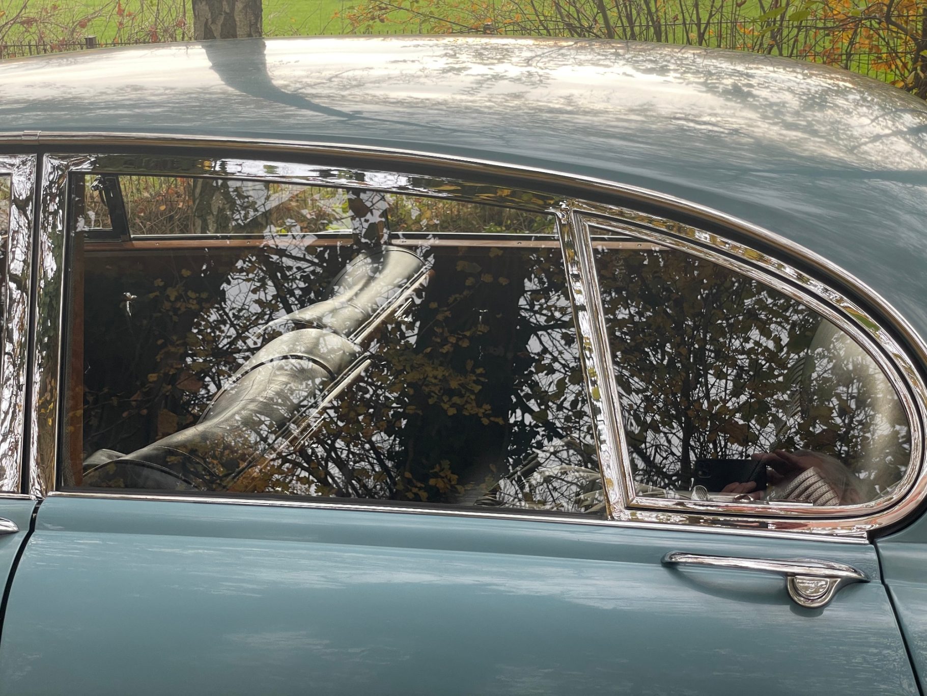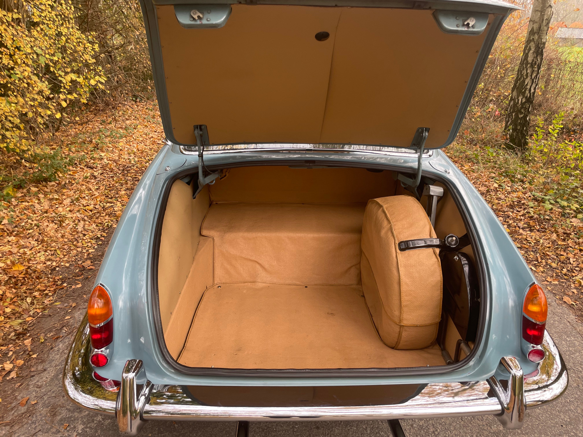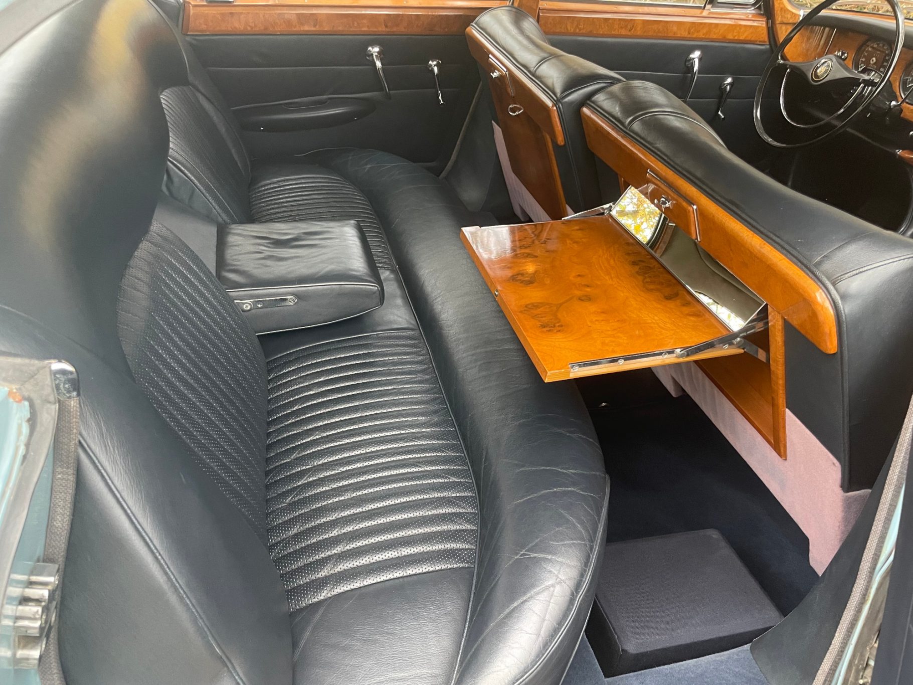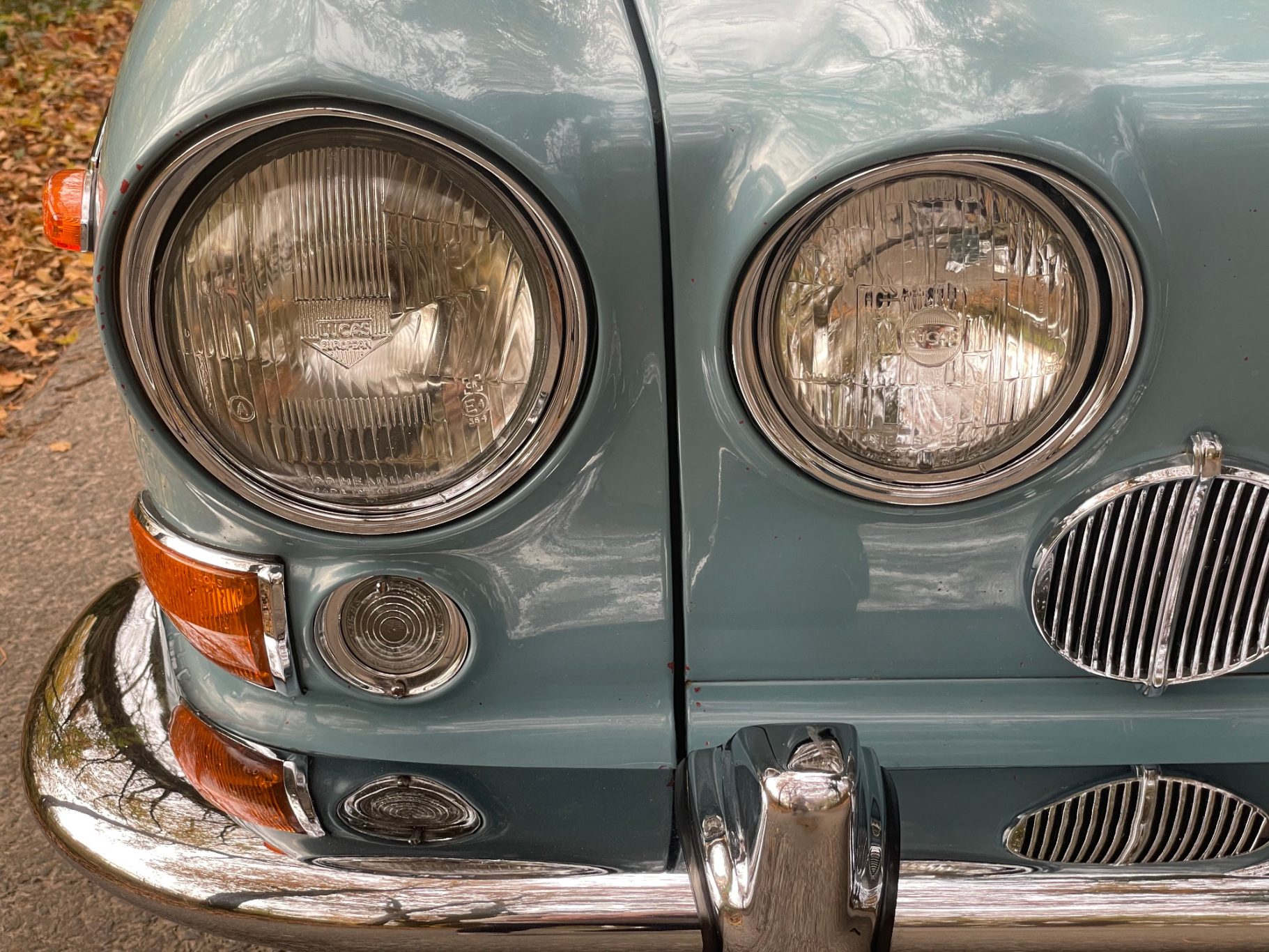 The first called Mark X was the final model in the era of the 'Big Jaguars' built from 1962 till 1970. In 1965 it was batched newly 420G also called the 'Big Gee' ... even its still a miracle what the 'G' is really standing for: Great or Grand or Georgious? Browns Lane never had an answer on this question. In 2007-2008 we searched nearly two years and watched up to twentyfive MK-X/420G to find 'the only one' and I felt instantly in love with this highly authentic and original example. My lefthand-drive Jaguar is a late production of 1969 with first registration in Stockholm Sweden. Quiet overall in its first layer of paint (just the rear door left not). The rare solid colour 'Light Blue' shows a unique and charming wear of age. Same with the rich leather interior, carpets, ceiling, wooden dashboard etc. Each detail as it came out of Browns Lane factory in 1969; including a non-assembled leaping cat on the bonnet. For me a very rare detail! By the way ... all specificatios are ´matching numbers´ as date of delivery.