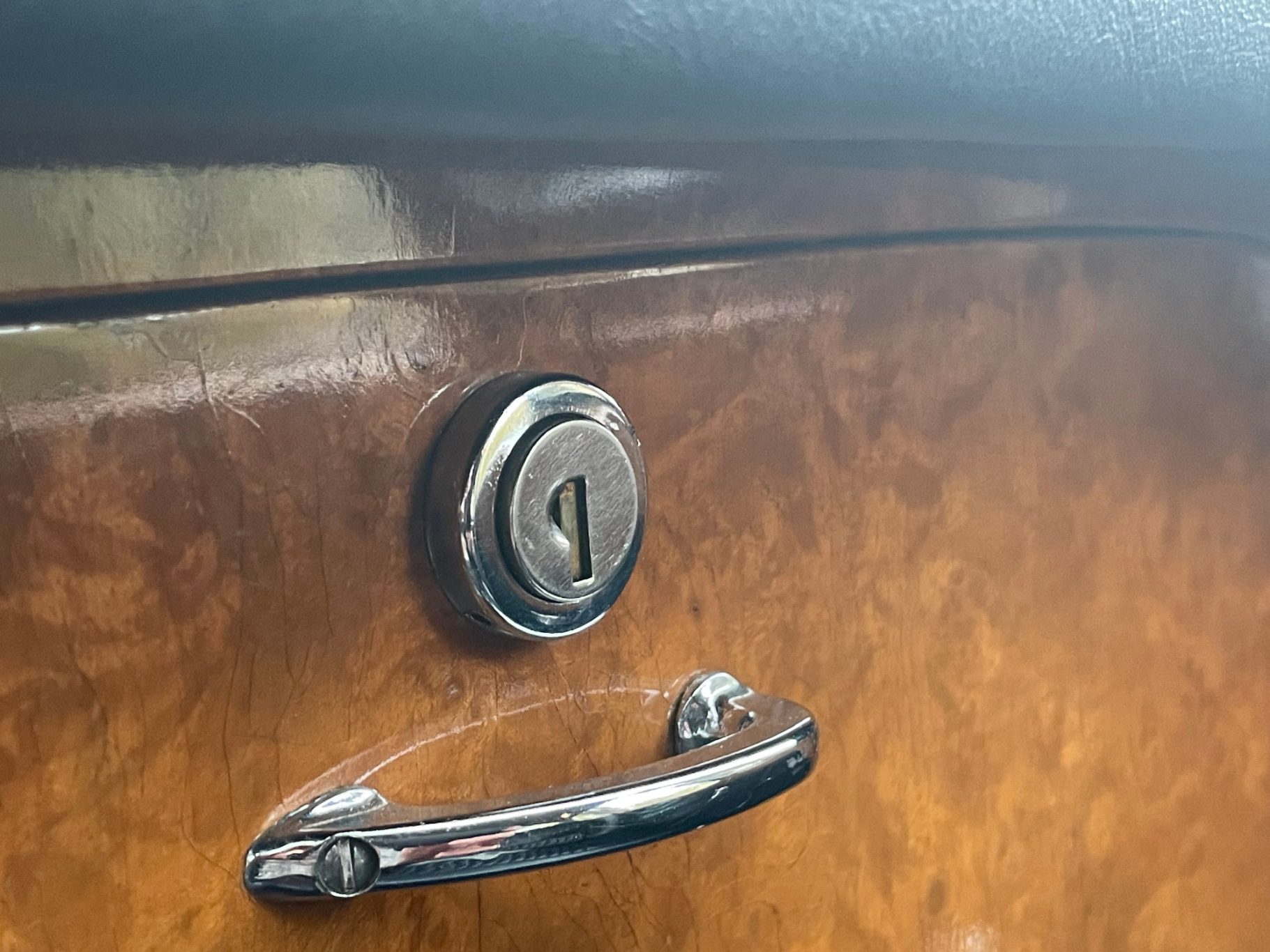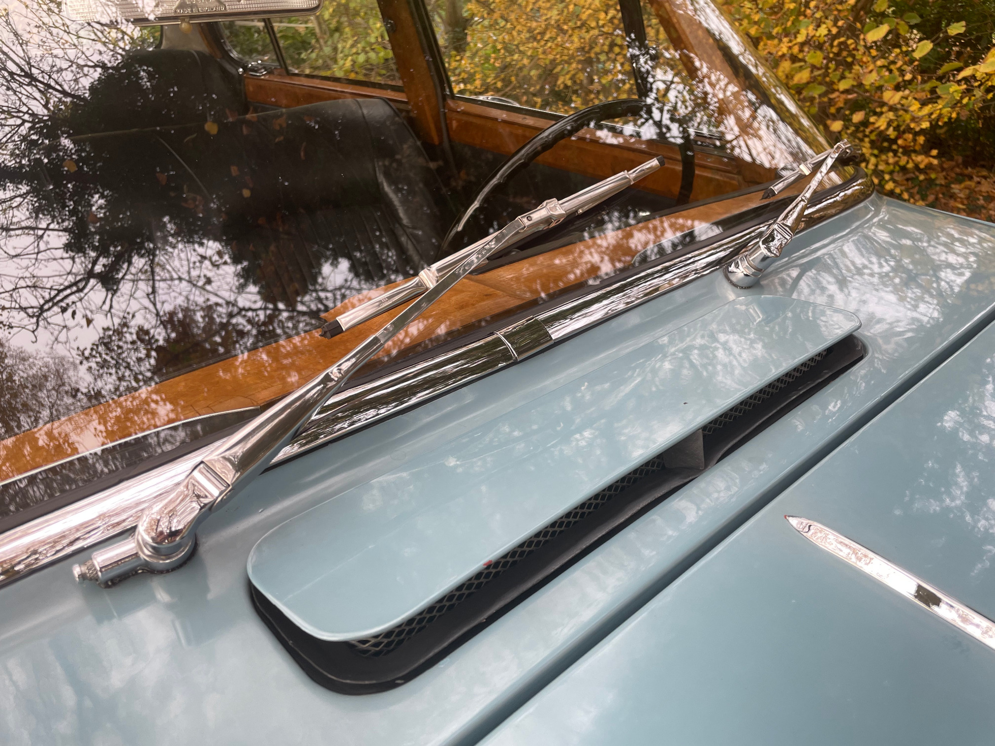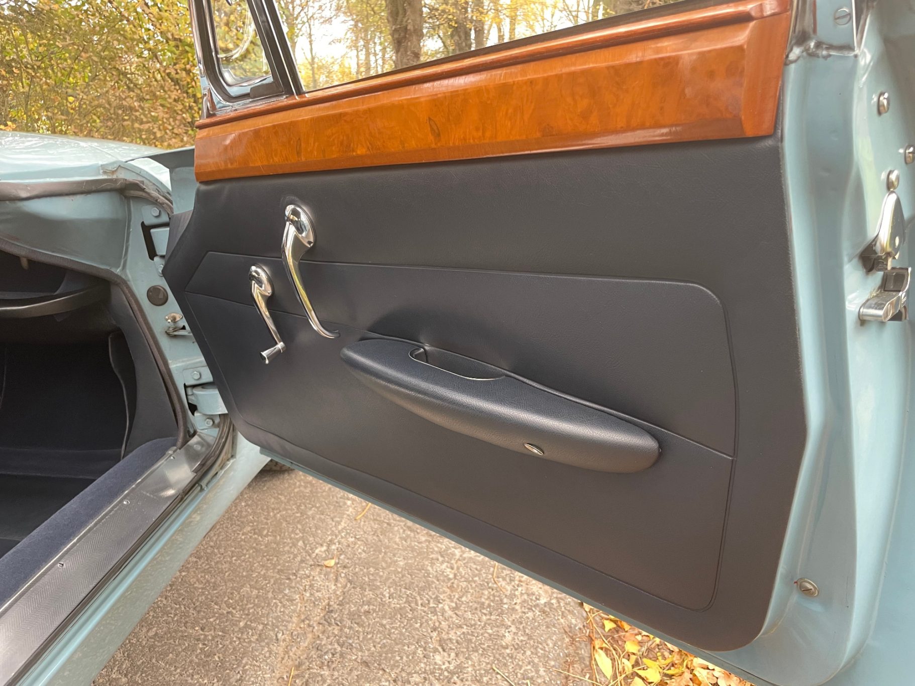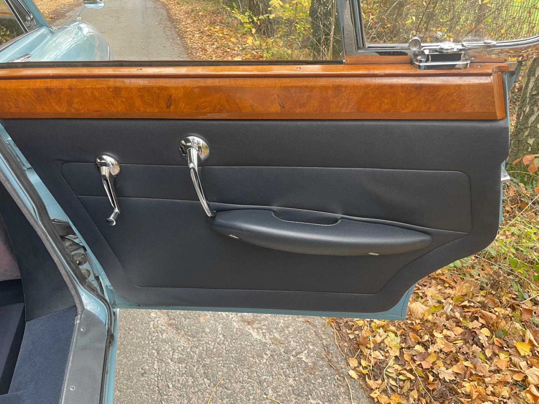 The first called Mark X was the final model in the era of the 'Big Jaguars' built from 1962 till 1970. In 1965 it was batched newly 420G also called the 'Big Gee' ... even its still a miracle what the 'G' is really standing for: Great or Grand or Georgious? Browns Lane never had an answer on this question. In 2007-2008 we searched nearly two years and watched up to twentyfive MK-X/420G to find 'the only one' and I felt instantly in love with this highly authentic and original example. My lefthand-drive Jaguar is a late production of 1969 with first registration in Stockholm Sweden. Quiet overall in its first layer of paint (just the rear door left not). The rare solid colour 'Light Blue' shows a unique and charming wear of age. Same with the rich leather interior, carpets, ceiling, wooden dashboard etc. Each detail as it came out of Browns Lane factory in 1969; including a non-assembled leaping cat on the bonnet. For me a very rare detail! By the way ... all specificatios are ´matching numbers´ as date of delivery.