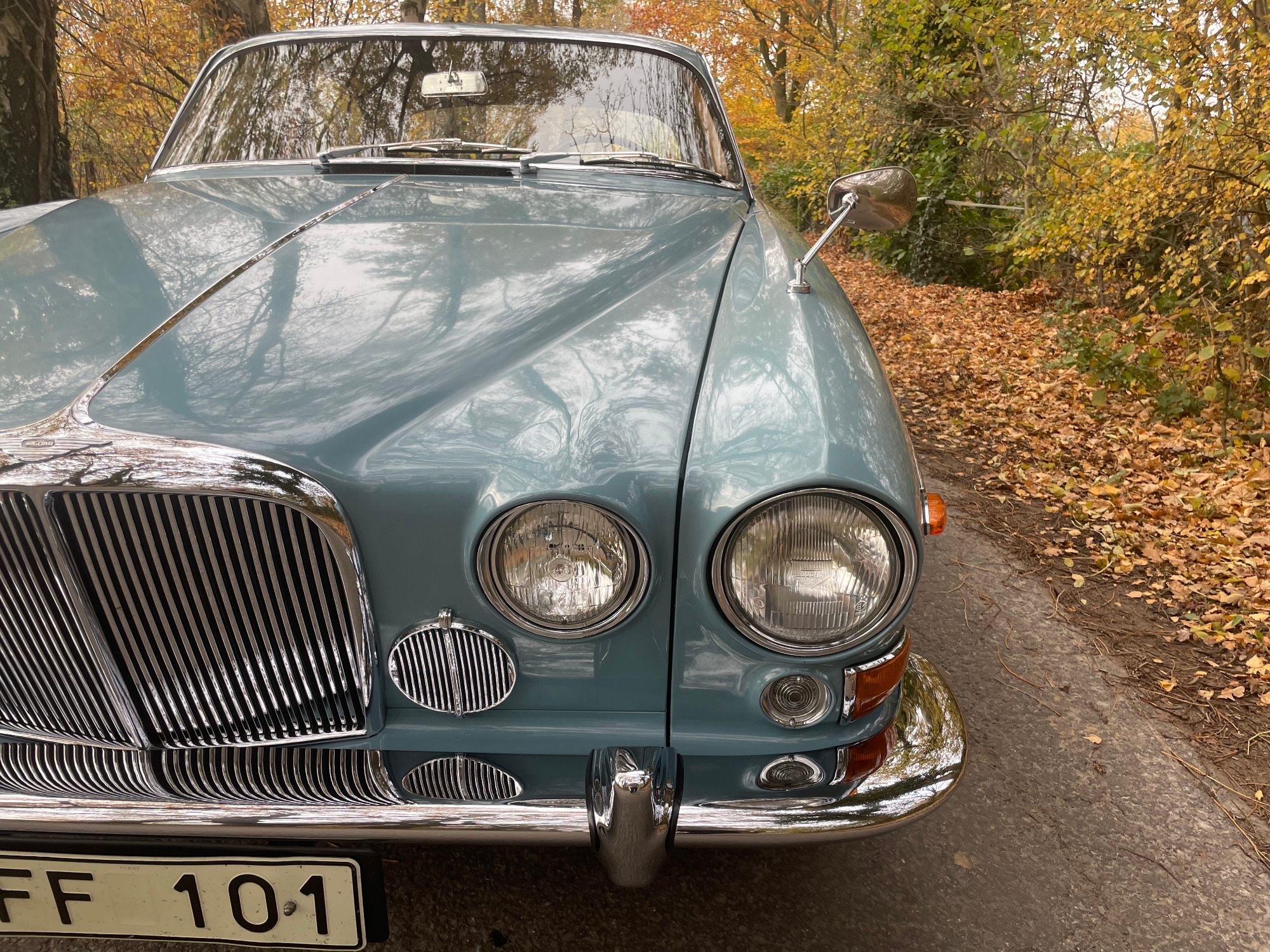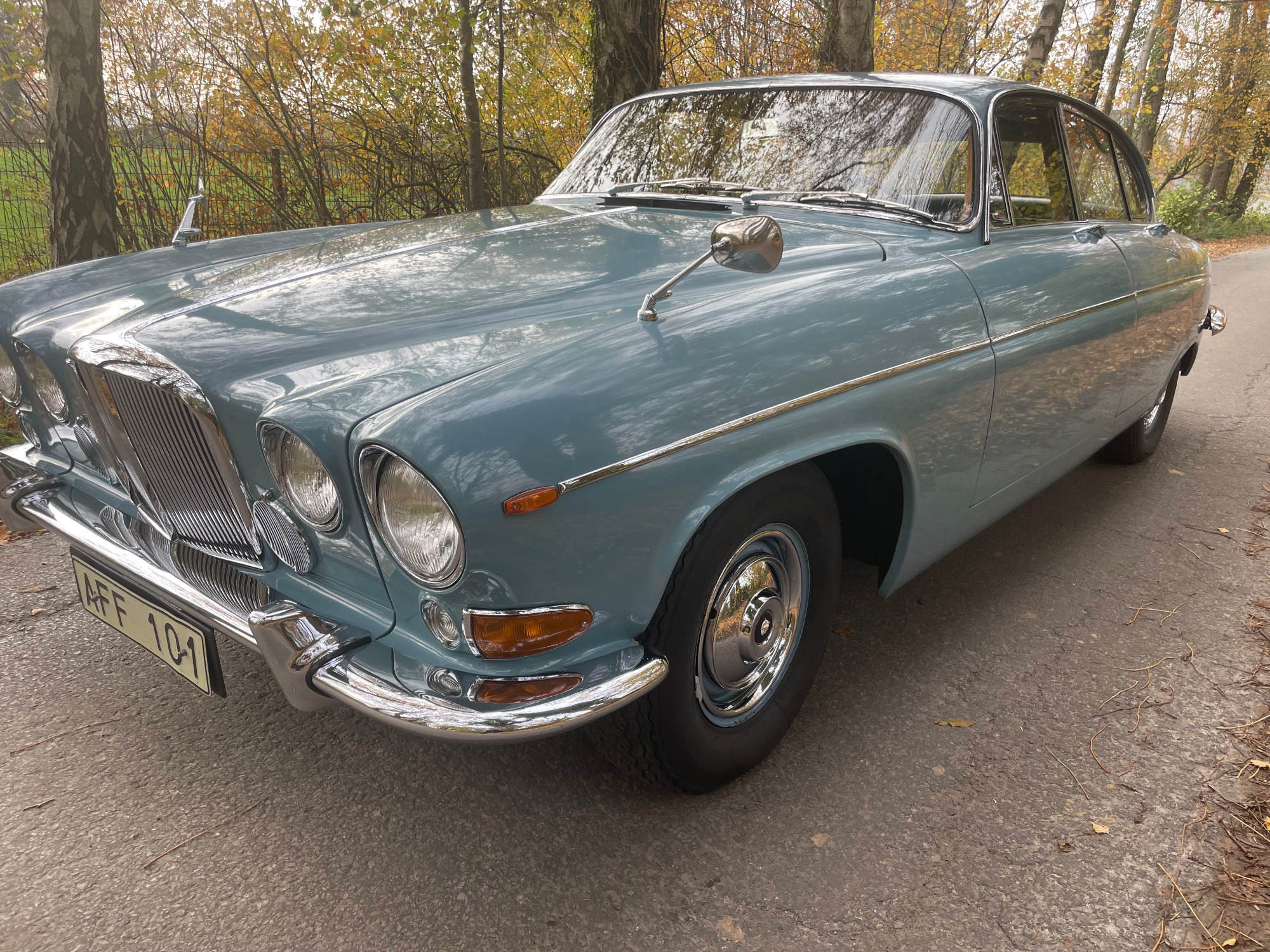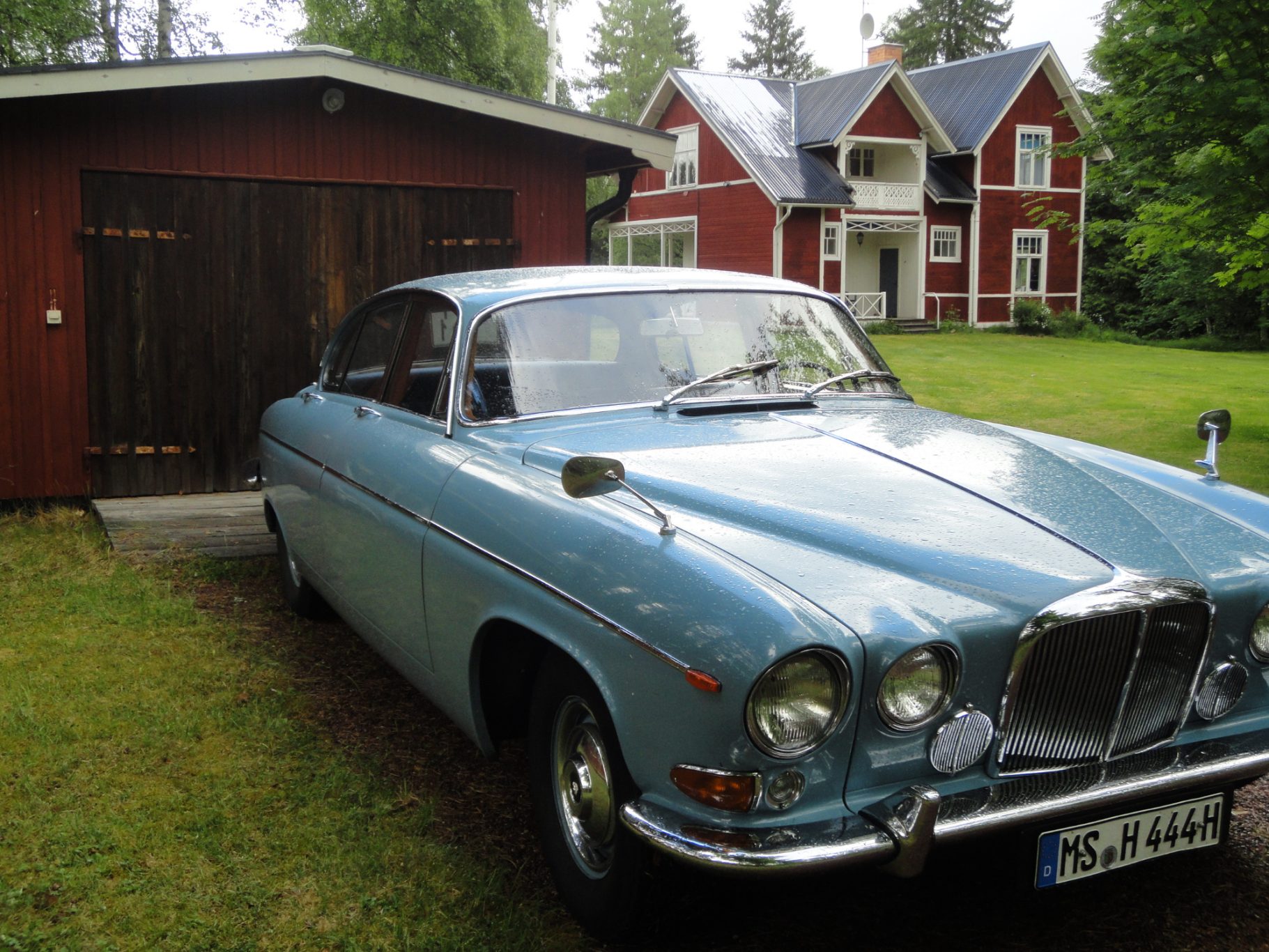 First registration in Stockholm/Sweden by Mr Forsberg, a medical doctor. After four years he overtook the Jaguar to his summerhouse at countryside Sweden and he drove it there just from may till september without any snow/ice/salty roads. The garage was kept alltime warm for the 420G. In 1997 he died and his wife passed the car to a close friend of them. Unfortunately Mr Lindberg got ill (loss of brain) and his family was forced to sell the Jaguar to a third owner. Mr Sederowsky is a friendly-crazy guy in Koeping who runs an own beer-brewery. After some years he advertized in 2008 this great kept Jaguar and on my trip to Sweden I fell immediatly in love with its unique authentic condition. In 2013 I made a big trip of 3500kms to Sweden to visit all previos owners. It was an honour to join the first owners wife, Mrs Forsberg, and we had a great time at her summerhouse where the Jaguar was kept approx 25years. Passing a lot of rich nature and historic castles I met Mr Lindberg and Mr Sederowsky, too. This was a great history-tour in its homeland Sweden! I am since 2008 the proud owner and I am loving all aspects of this great Jaguar...