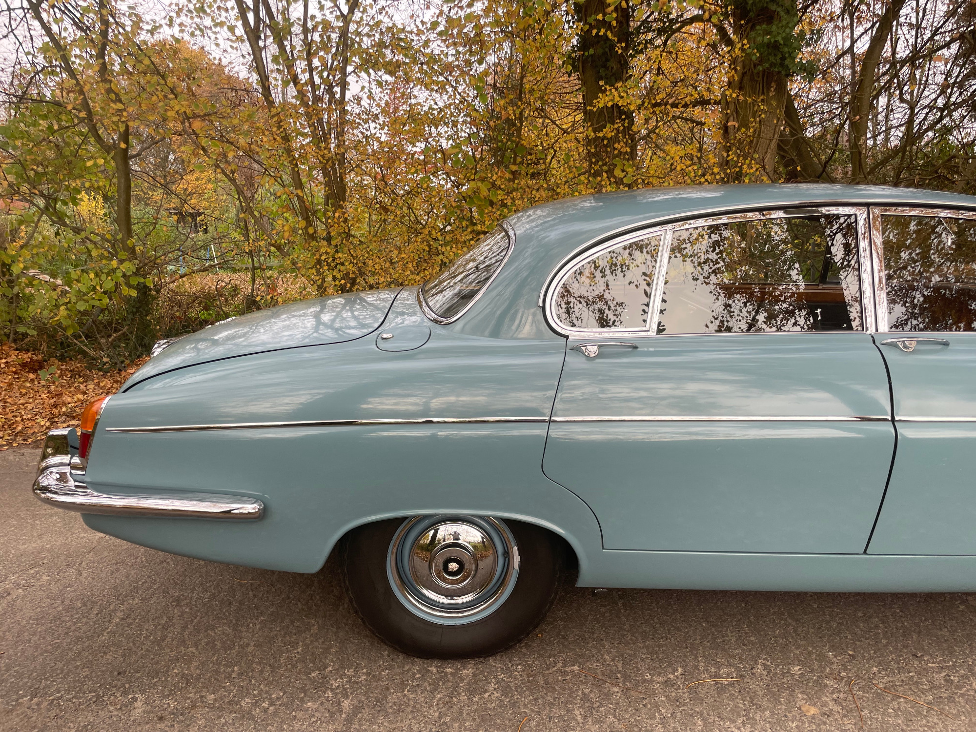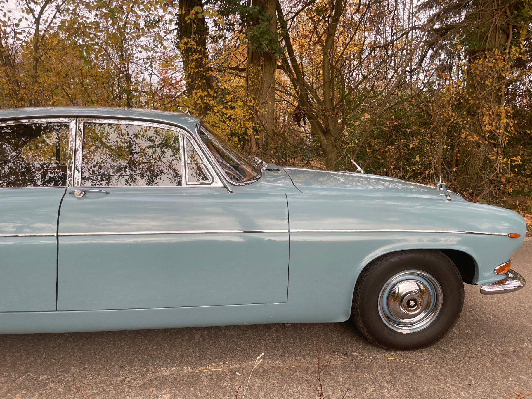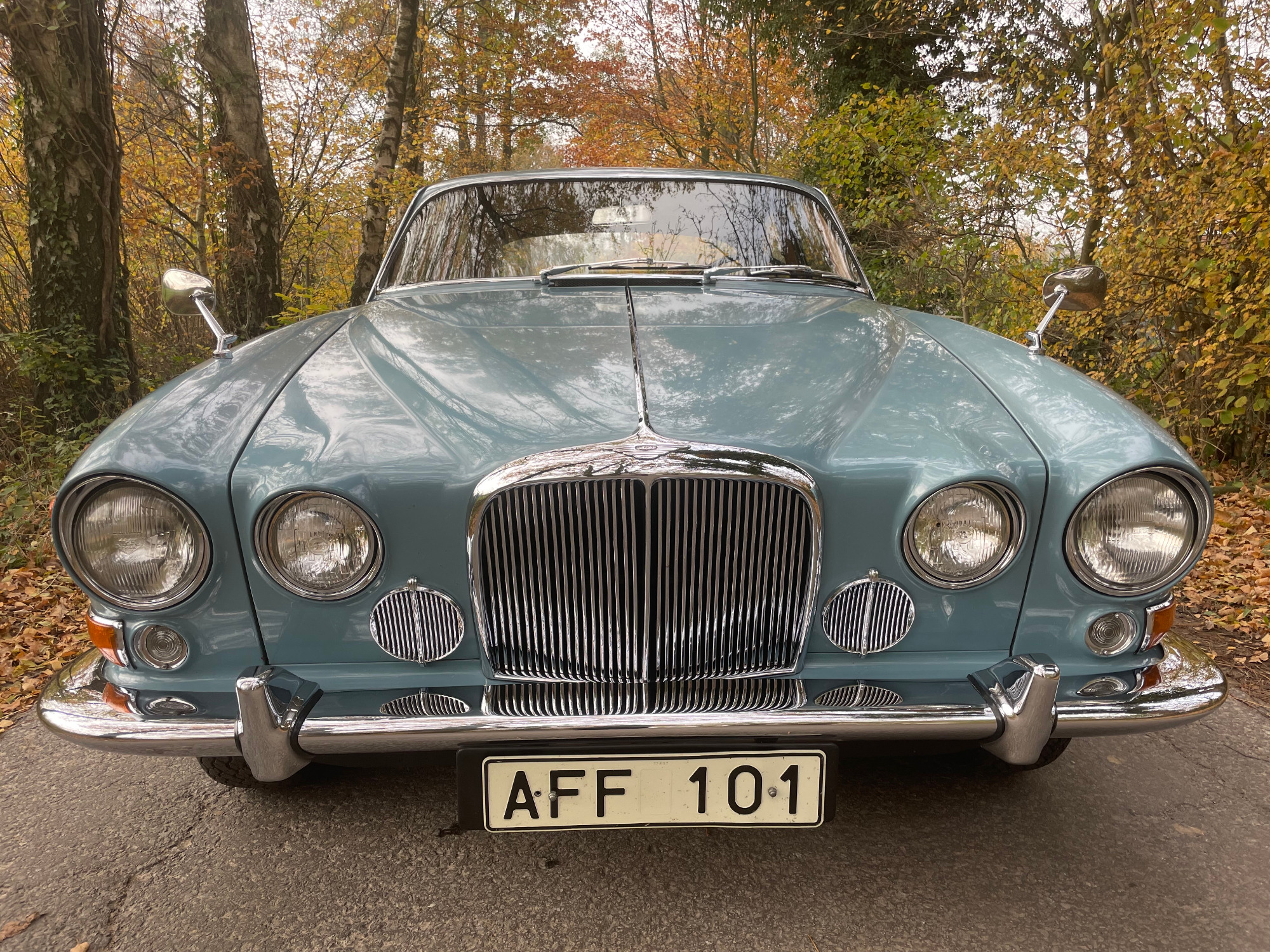 First registration in Stockholm/Sweden by Mr Forsberg, a medical doctor. After four years he overtook the Jaguar to his summerhouse at countryside Sweden and he drove it there just from may till september without any snow/ice/salty roads. The garage was kept alltime warm for the 420G. In 1997 he died and his wife passed the car to a close friend of them. Unfortunately Mr Lindberg got ill (loss of brain) and his family was forced to sell the Jaguar to a third owner. Mr Sederowsky is a friendly-crazy guy in Koeping who runs an own beer-brewery. After some years he advertized in 2008 this great kept Jaguar and on my trip to Sweden I fell immediatly in love with its unique authentic condition. In 2013 I made a big trip of 3500kms to Sweden to visit all previos owners. It was an honour to join the first owners wife, Mrs Forsberg, and we had a great time at her summerhouse where the Jaguar was kept approx 25years. Passing a lot of rich nature and historic castles I met Mr Lindberg and Mr Sederowsky, too. This was a great history-tour in its homeland Sweden! I am since 2008 the proud owner and I am loving all aspects of this great Jaguar...